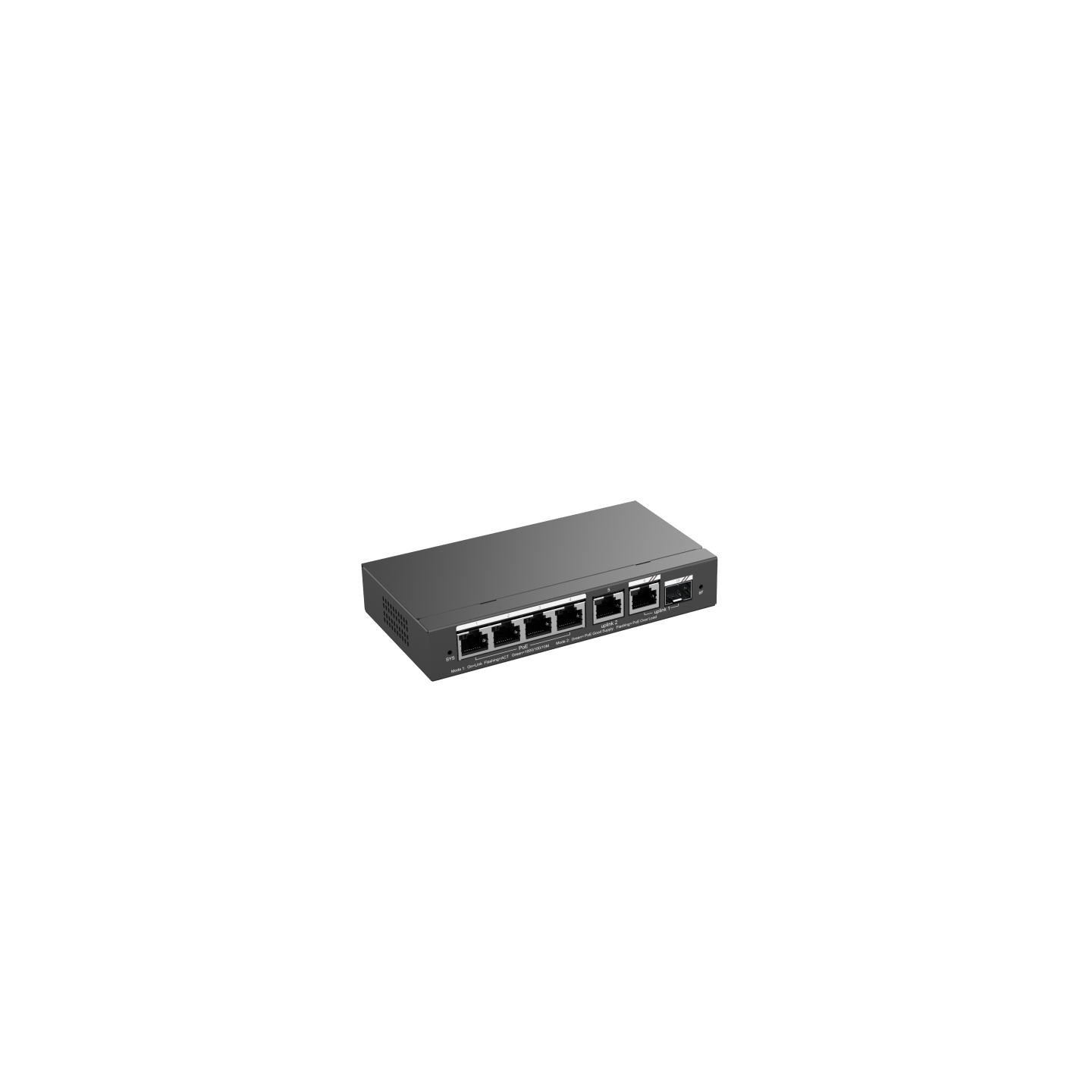 4 x GbE PoE+ Ports, 1 x 1G Combo Uplink Port, 1 x GbE Uplink Ports